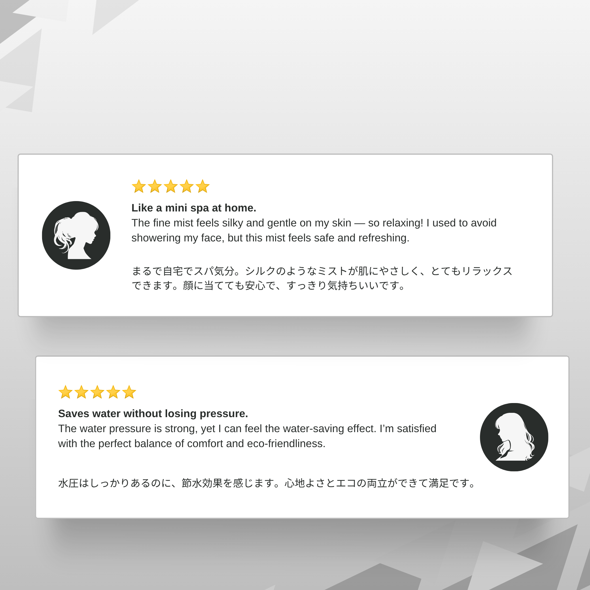 - Save water, beautifully: Up to about 60% less water in mist mode (based on third-party testing)